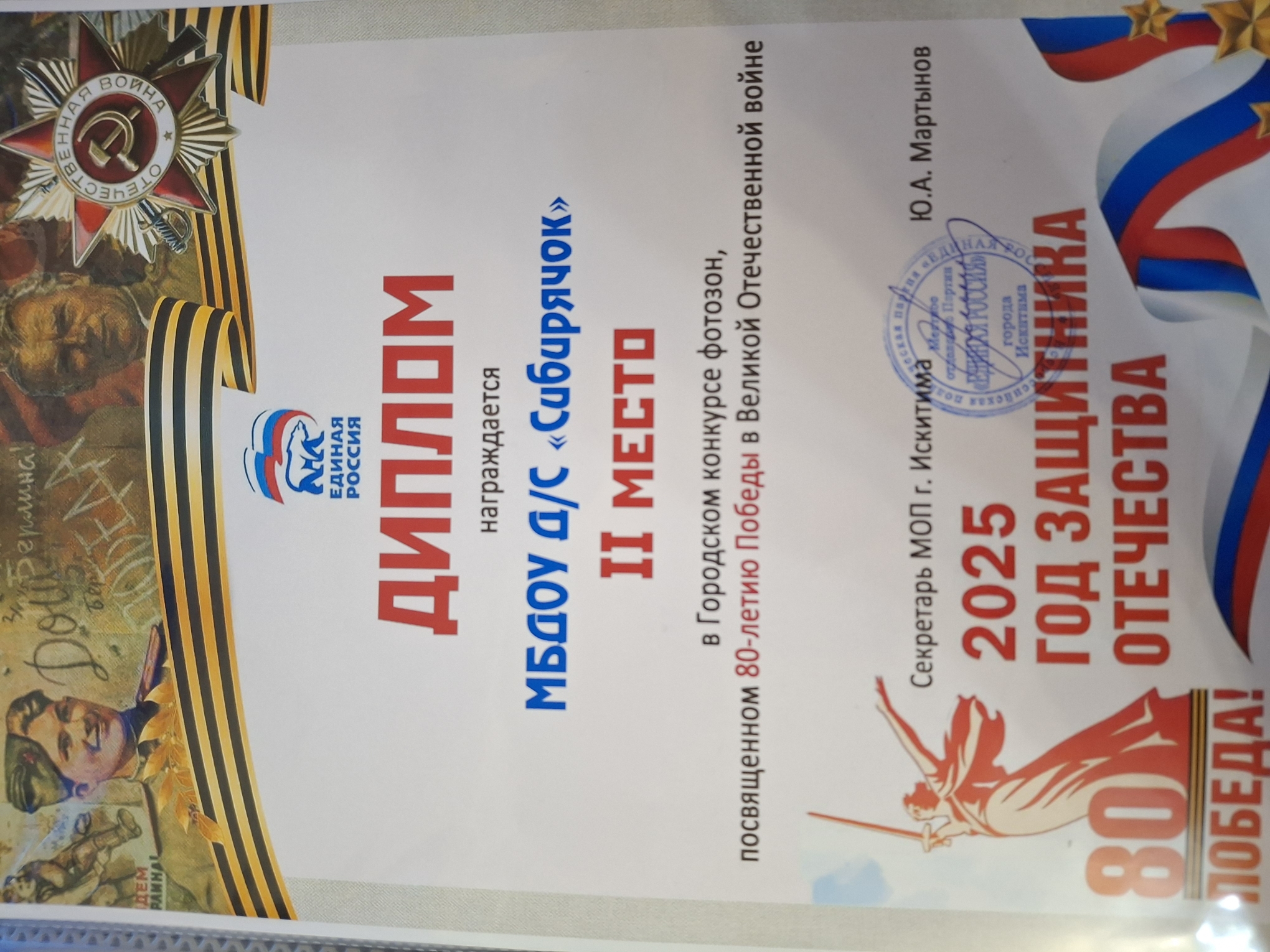 Диплом за II место в Городском конкурсе фотозон, посвященном 80- летию Победы в Великой Отечественной Войне